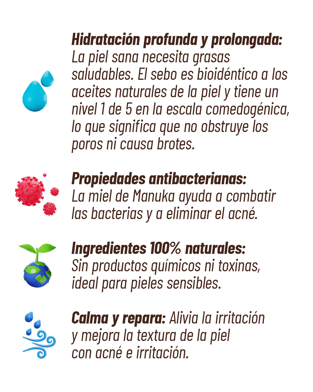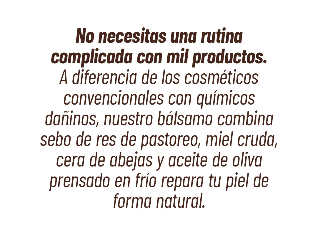 ¡No! Nuestro sebo no es comedogénico, lo que significa que no obstruirá tus poros, solo nutrirá tu piel y le permitirá respirar libremente.